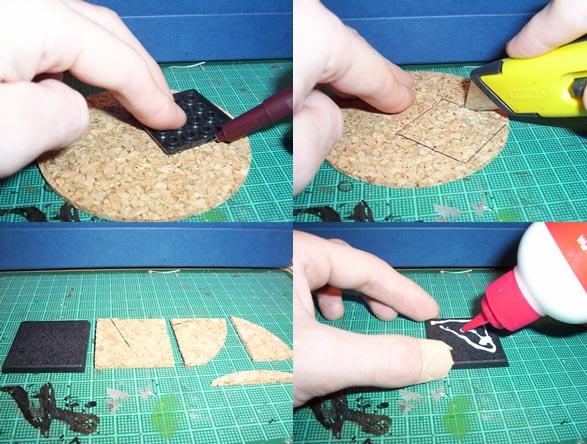 Take your plastic base and lay it top down on the cork, draw around it using a pen or pencil.