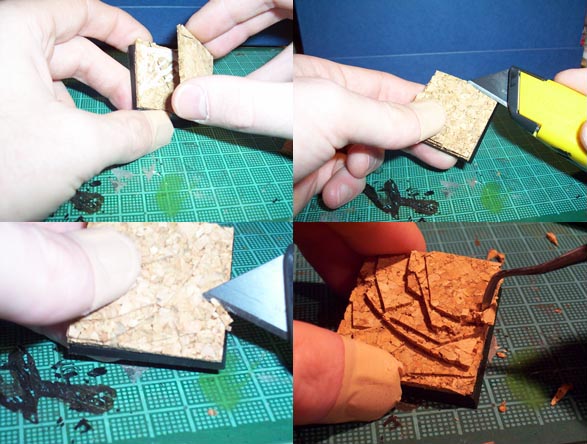 Again with your box cutter cut small v shapes into the cork to simulate chipped rock, only cut halfway