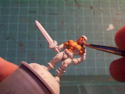 Prepare you model by filling away the flash and giving it a light coat of white primer